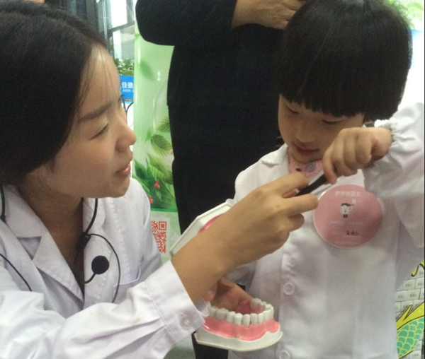 之后佳德口腔医生带领着孩子们,一步一步的给其他孩子和家长做着口腔检查,同时还教着孩子如何注意口腔卫生。从而让孩子们更加直观地学习了蛀了牙,牙结石等口腔知识。
